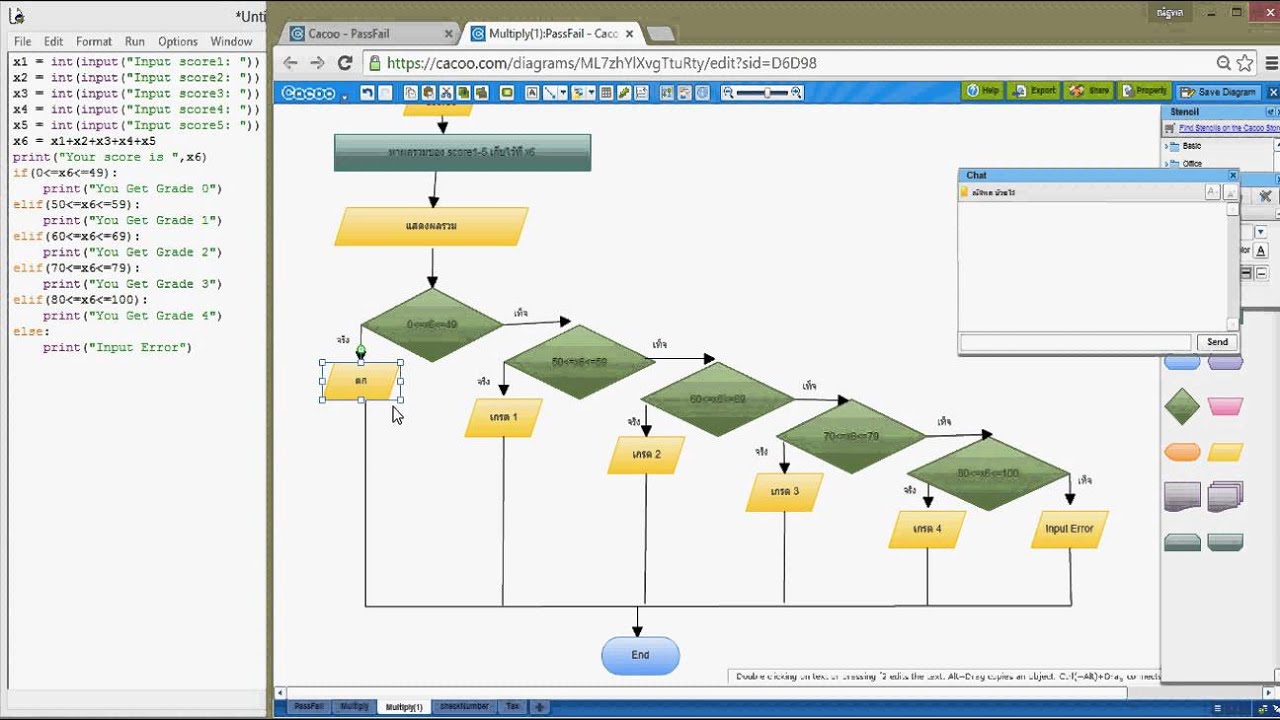 Diagram โปรแกรมตัดเกรด ภาษาไพธอน python - YouTube