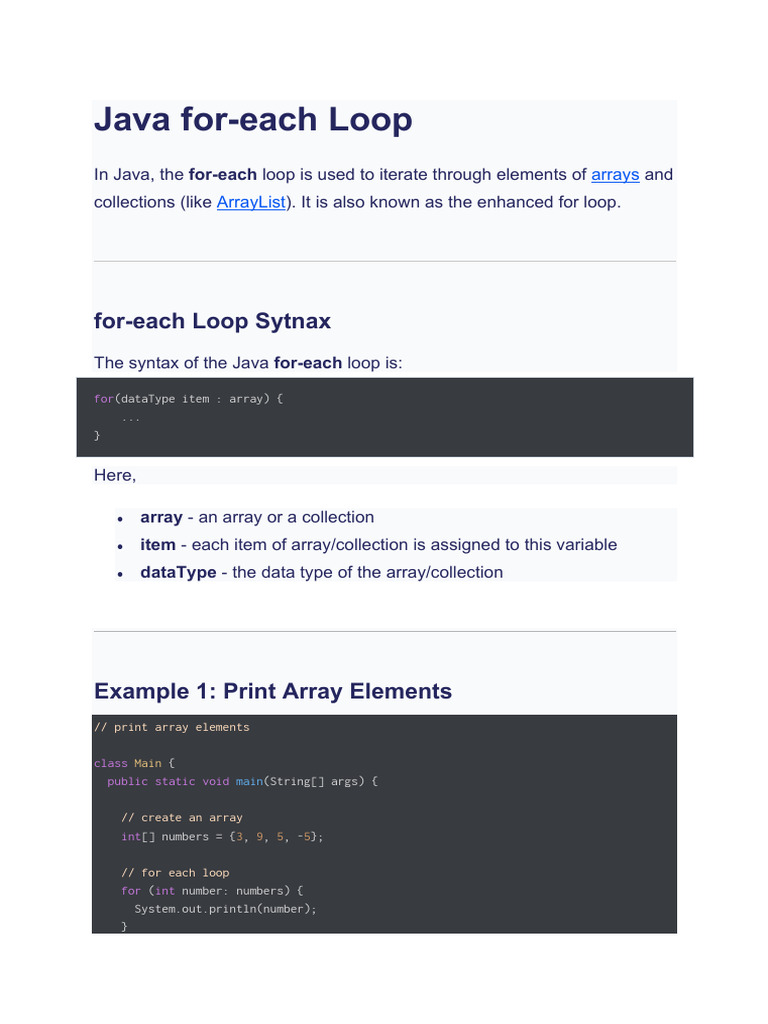 Java for-each Loop (With Examples) | PDF