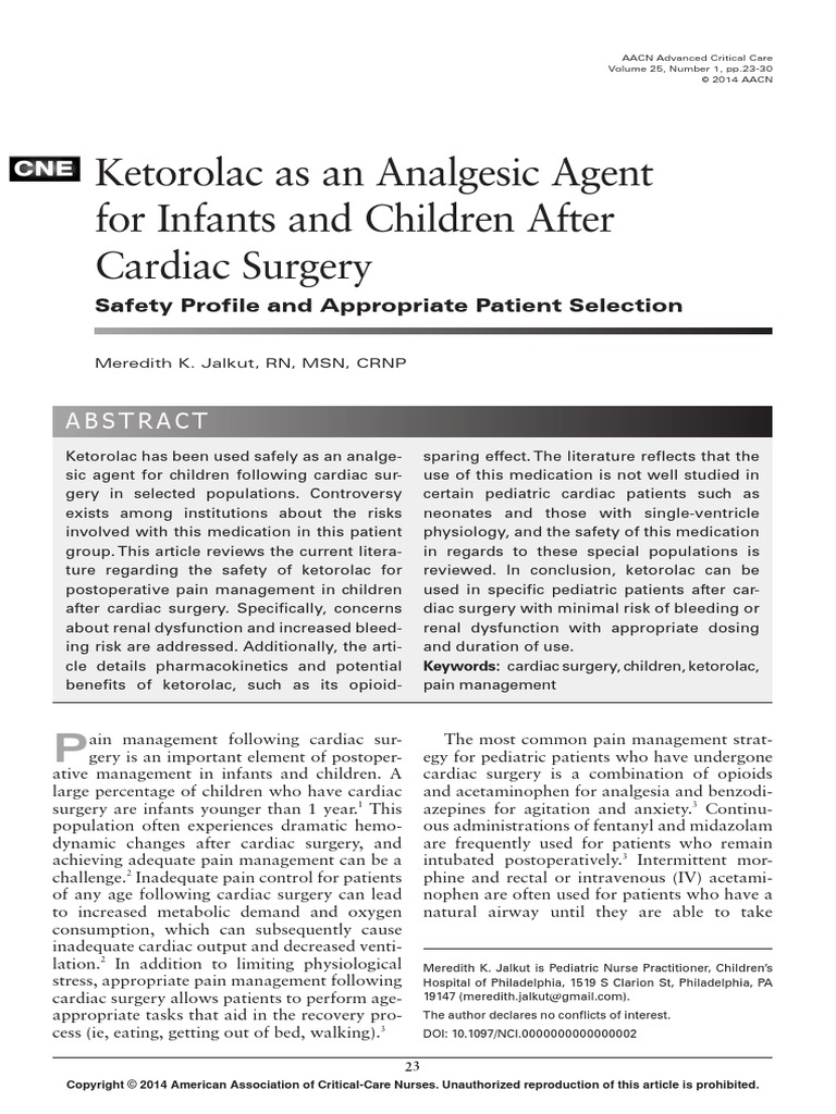 Ketorolac As An Analgesic Agent For Infants and Children After Cardiac ...