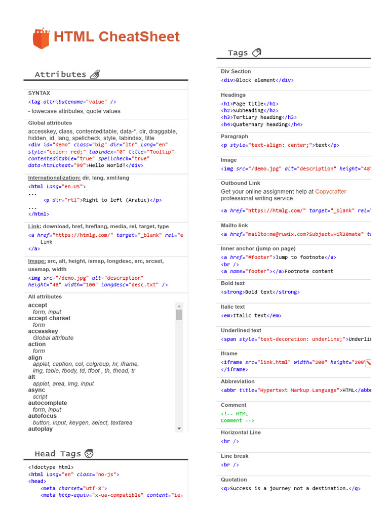 Html css cheatsheet pdf included – Artofit