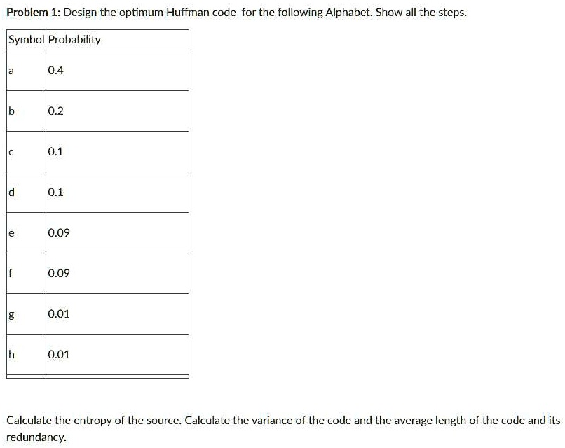 Solved 1. Apply Huffman coding for the symbol given in table | Chegg.com