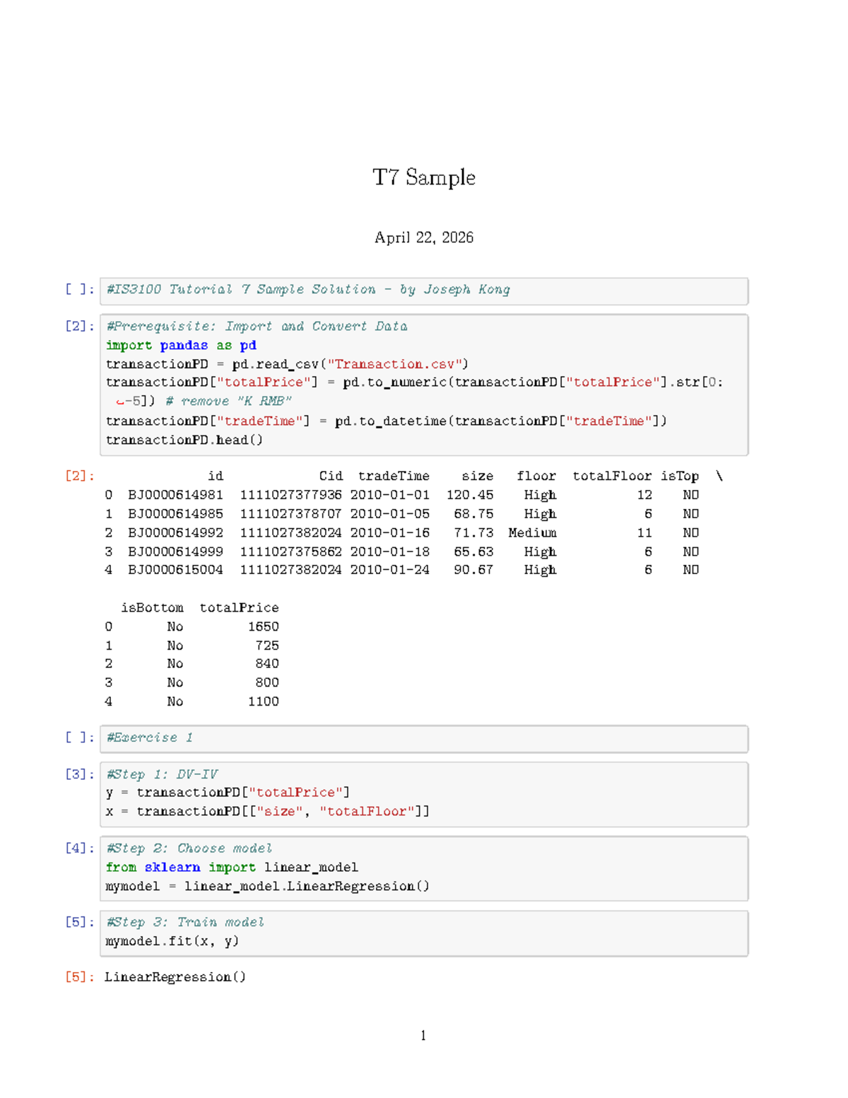 T7 Sample Solution - Tutorial 7 Data Import & Model Training - Studocu