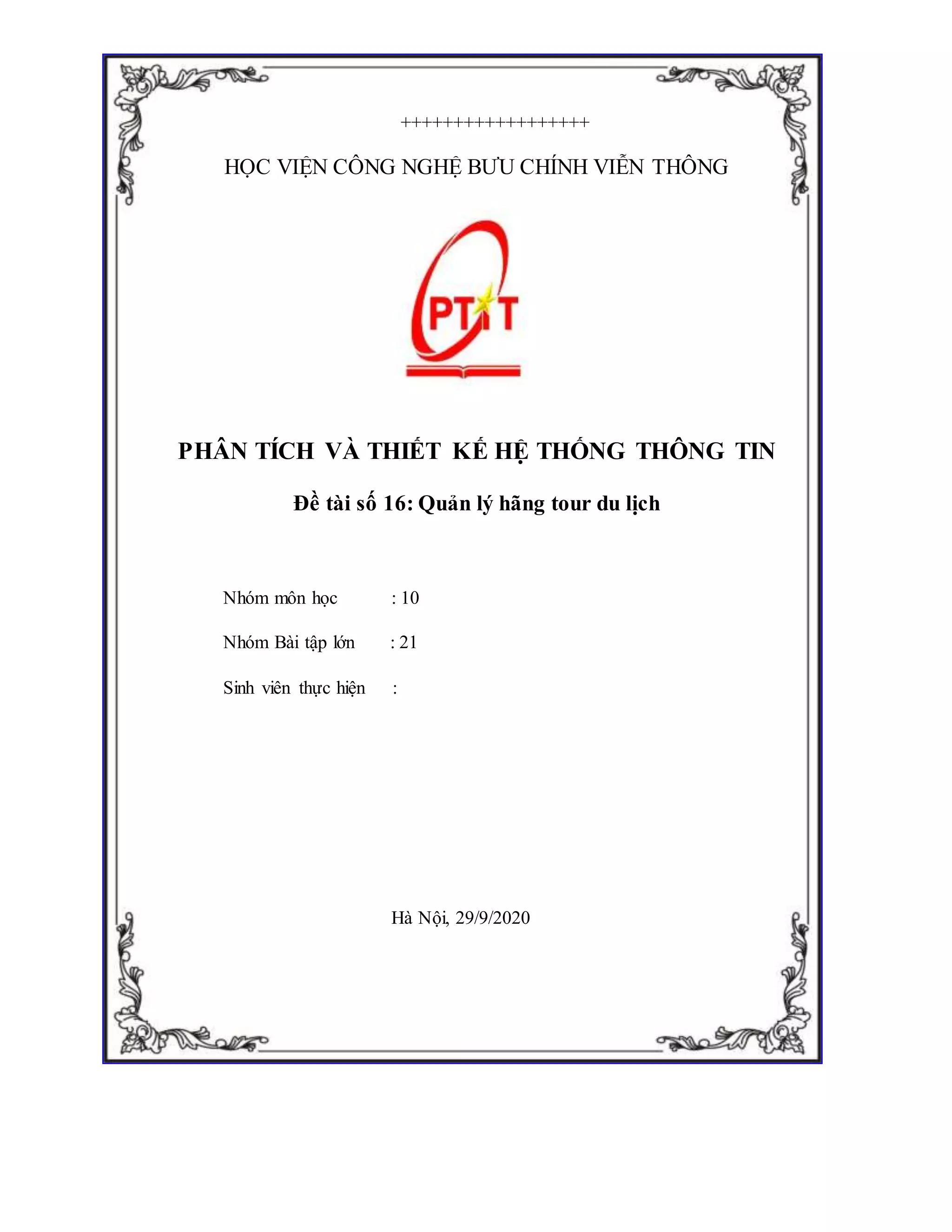 Phân tích thiết kế hệ thống thông tin PTIT | DOCX
