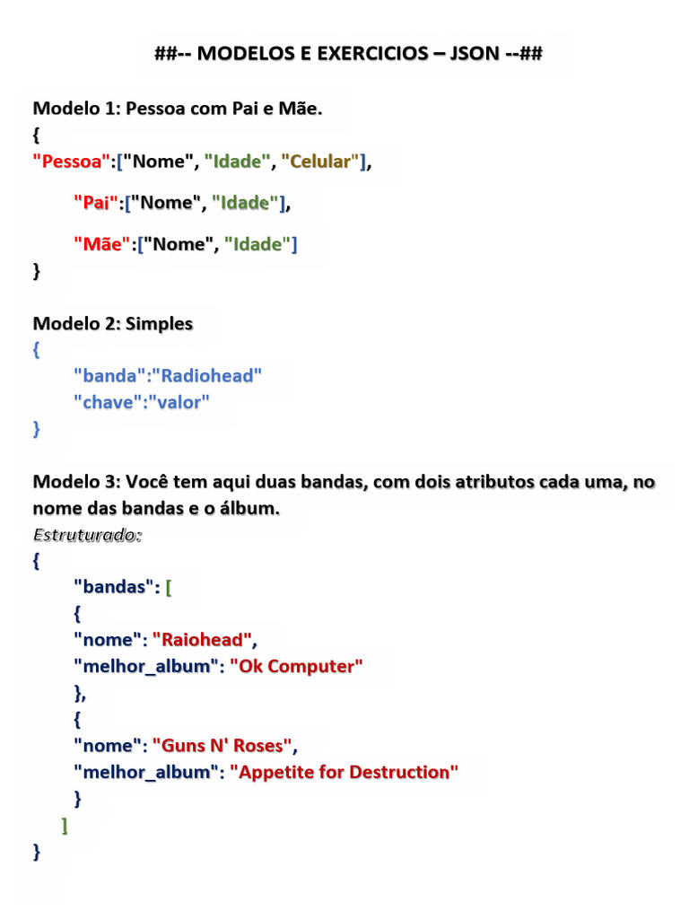 Modelos e Exercicios-Json | PDF | Programação de computadores