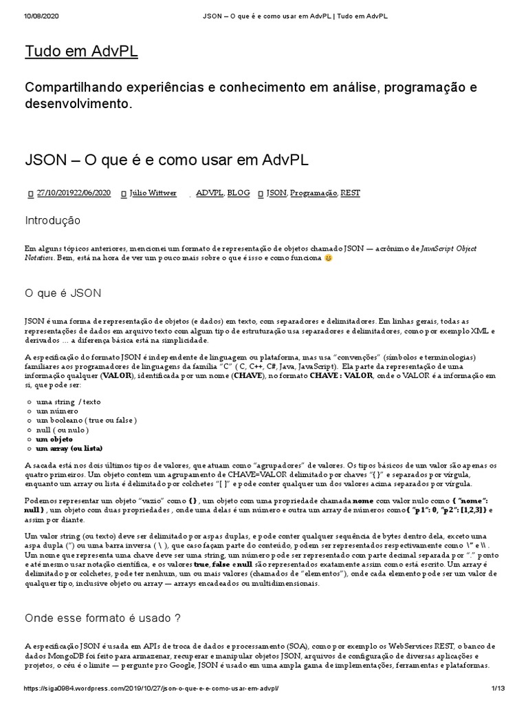 JSON - O Que É e Como Usar em AdvPL - Tudo em AdvPL 2022 | PDF ...