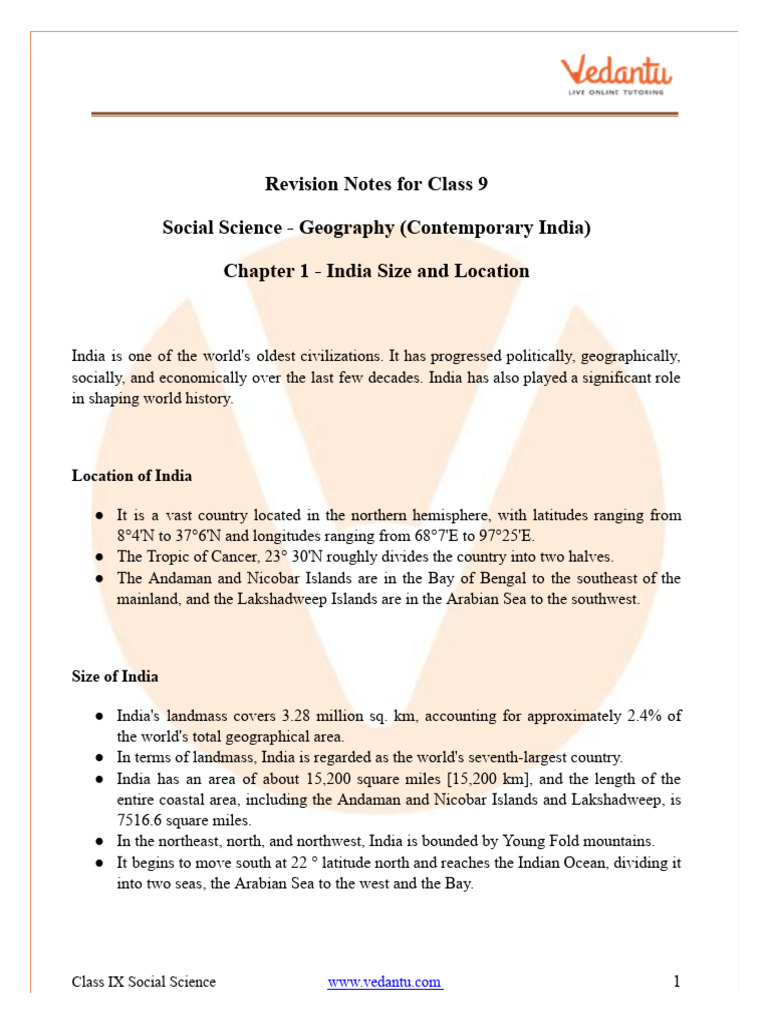 Class 9 Geography Chapter 1: India Size And Location NOTES( Notes is in ...