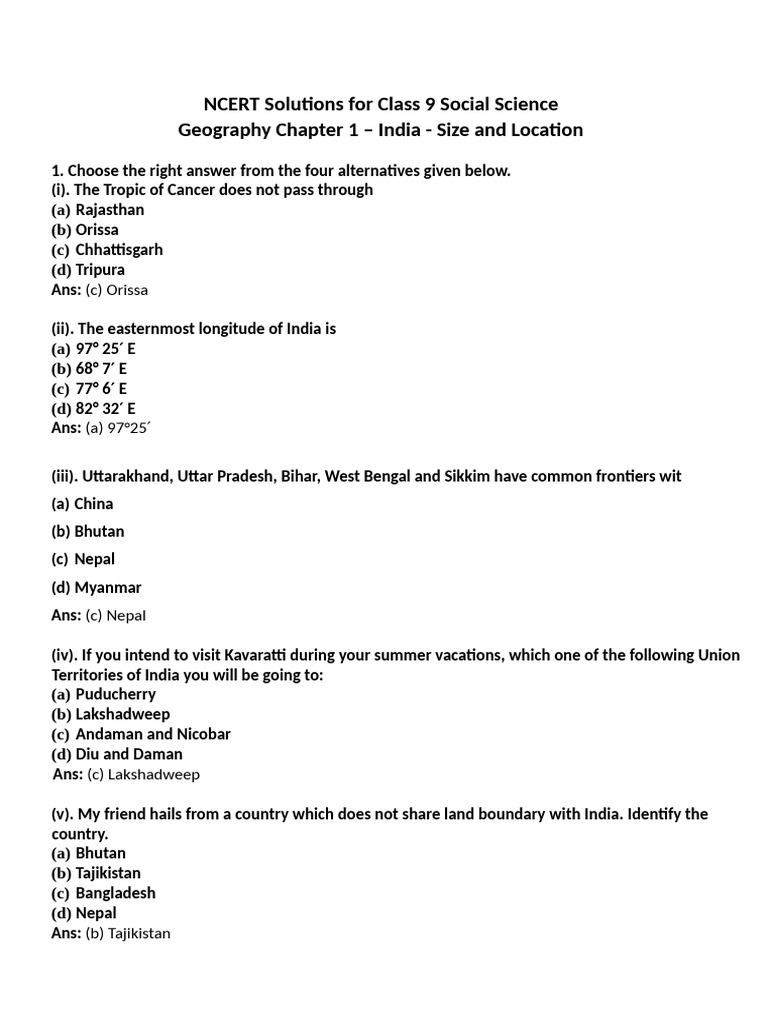 NCERT Solutions for Class 9 Social Science Geography Chapter 1 India ...