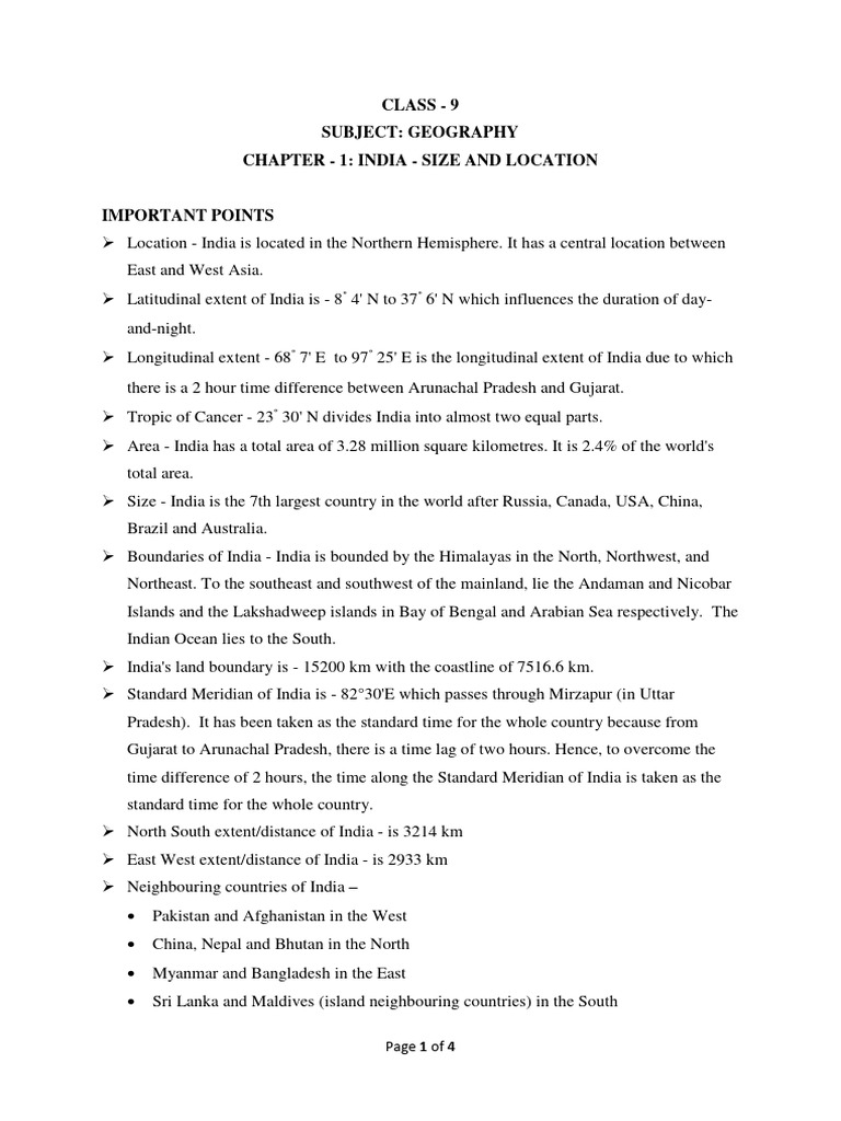 Class 9 Geography Chapter 1 India Size and Location | PDF | Latitude ...