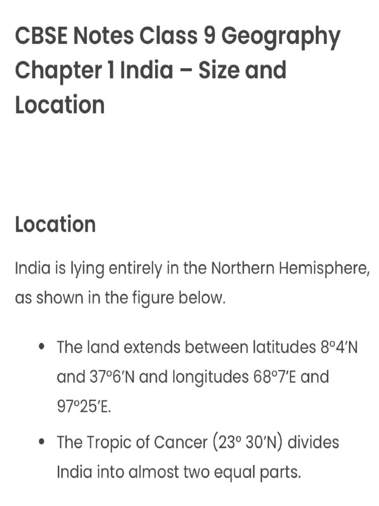 Class 9th Geography Chapter 1| India-Size and Location | PDF