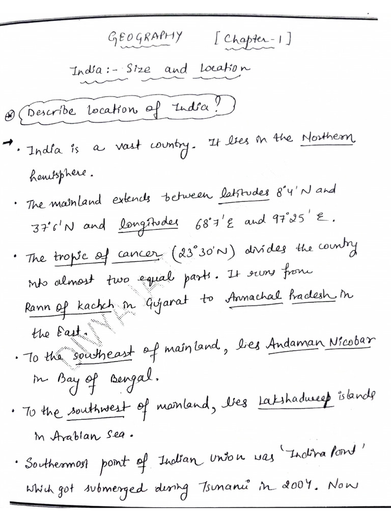 Cbse Class 9 Geography Chapter 1 India Size And Location Handwritten ...