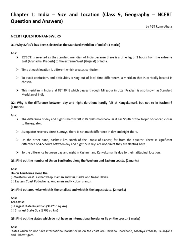 NCERT Class 9 Geography: Chapter 1. INDIA – Size and Location Extra ...