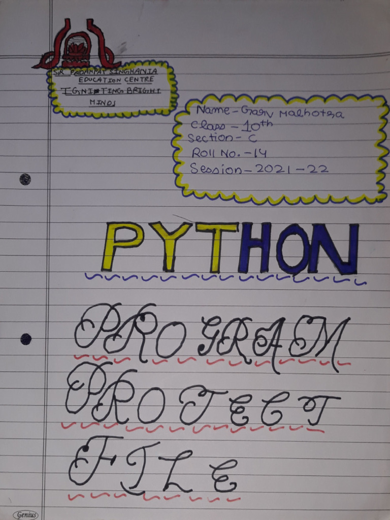 Based on this image's title: “Python Programming Project File | PDF”