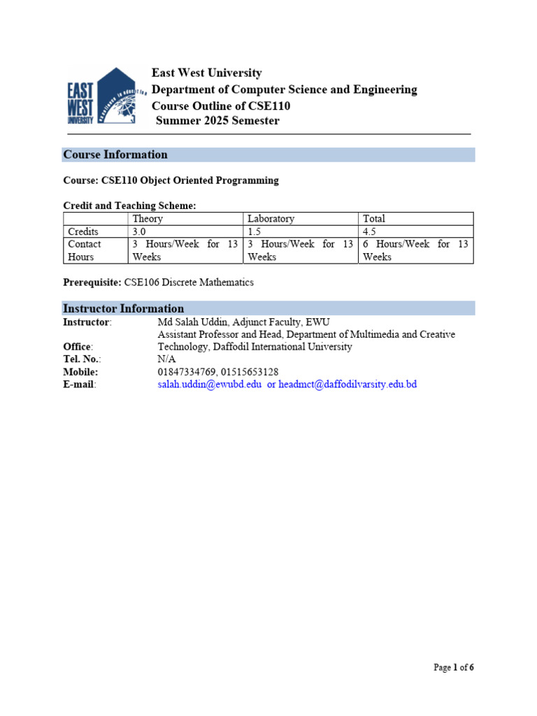 CSE110 SUDDIN Course Outline | PDF | Object Oriented Programming ...