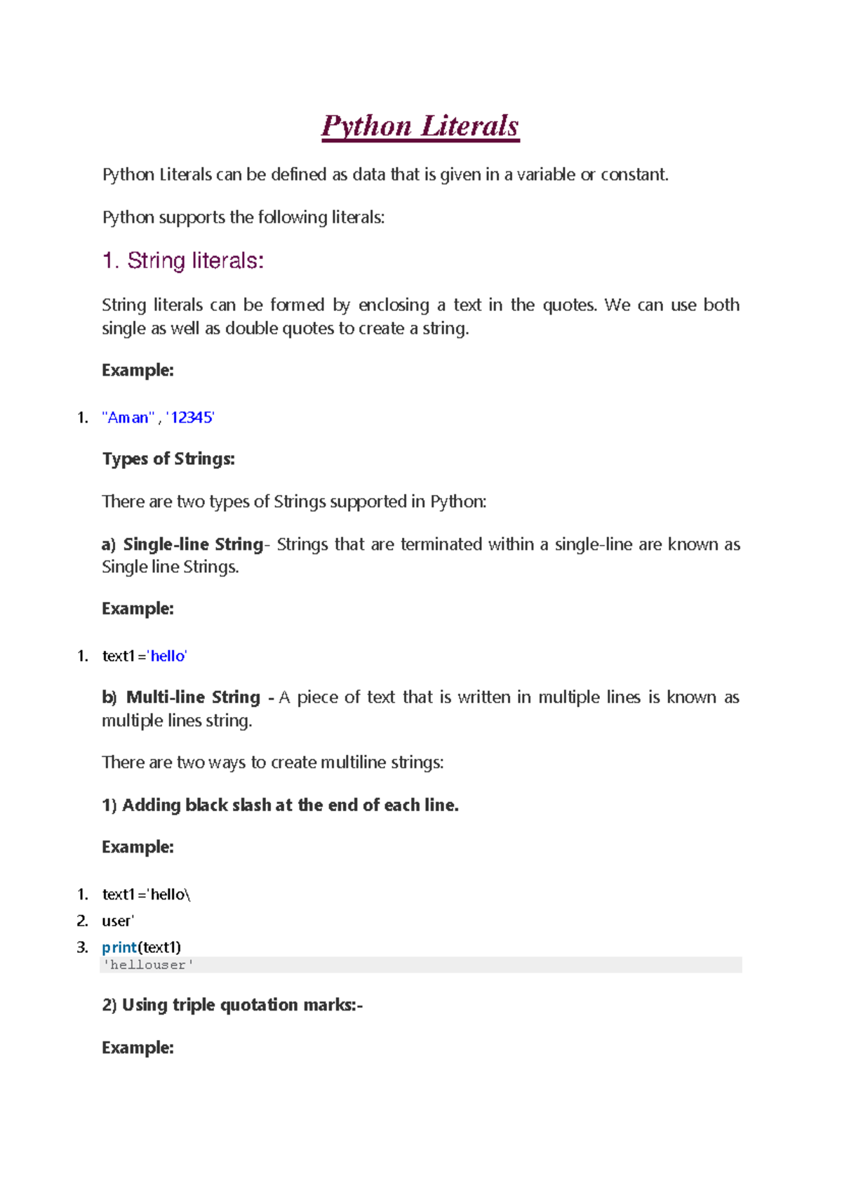 Literals-in-Python | Download Free PDF | Boolean Data Type | String ...