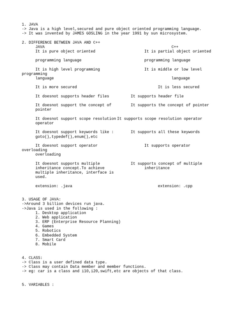 JAVA Notes | PDF | Java (Programming Language) | Class (Computer ...