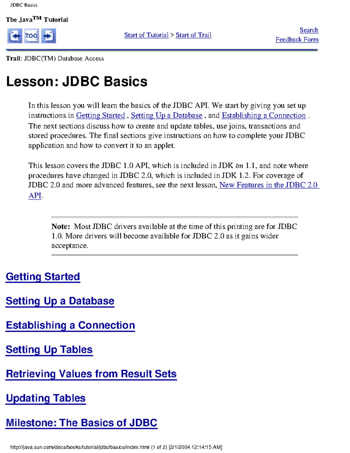 JDBC-Tutorial - jdbc - JDBC Basics The JavaTM Tutorial Start of ...