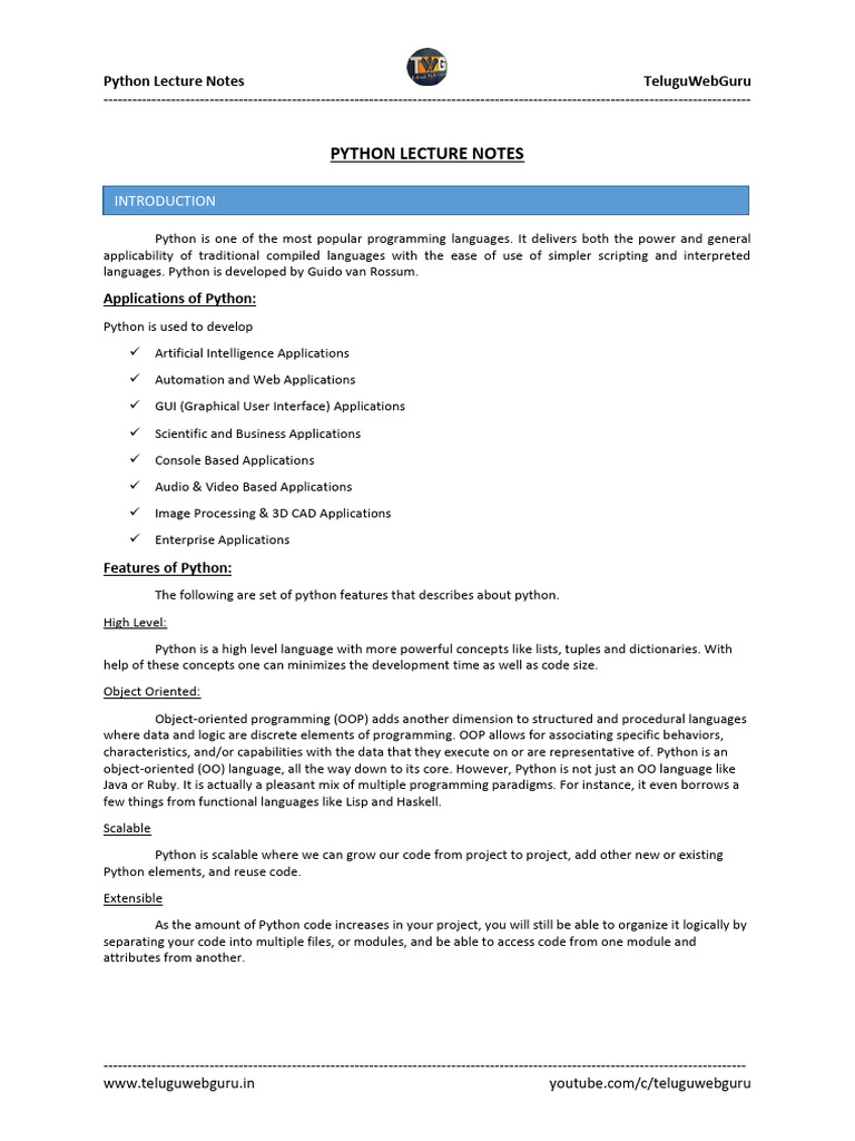Python Programming Lecture Notes | PDF | Python (Programming Language ...