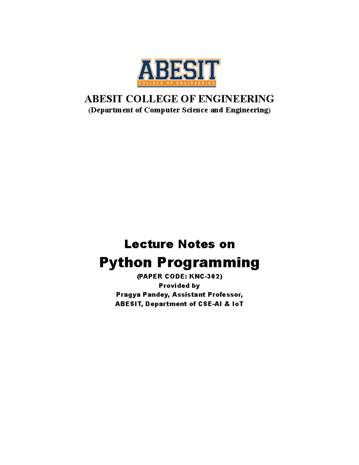 Python Programming notes-U-1 to U-5 - ABESIT COLLEGE OF ENGINEERING ...
