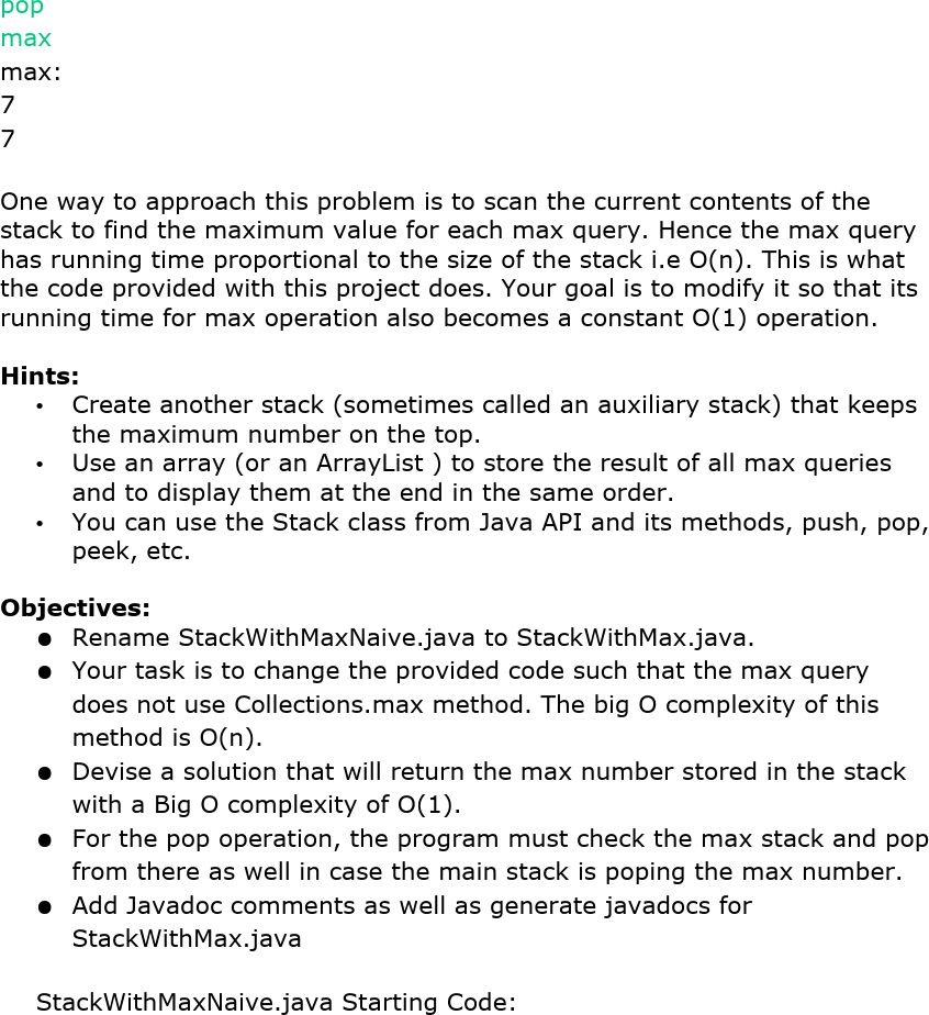 CONCEPTS COVERED - Java Collections class The Stack | Chegg.com