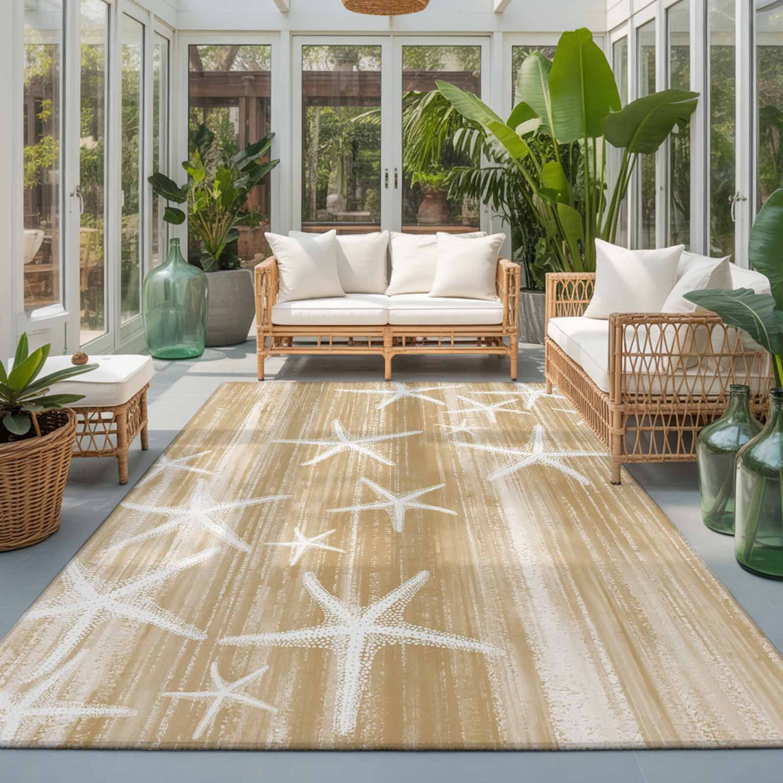 Area Rugs for Living Room 4x6 Ft, Light Brown Starfish Coastal Non Slip ...