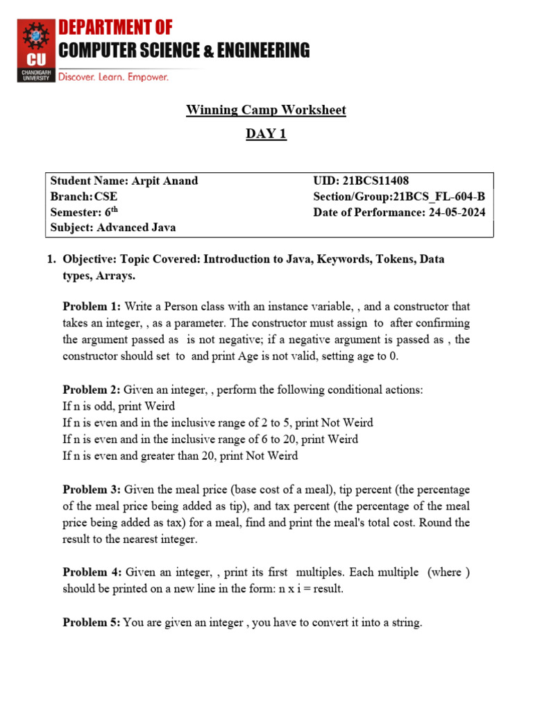 21BCS11408 - Arpit Anand (JAVA Day1) | PDF | Constructor (Object ...