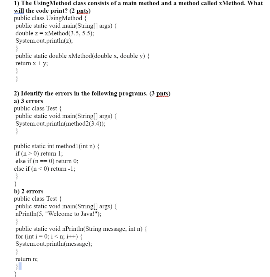Solved 1) The UsingMethod class consists of a main method | Chegg.com