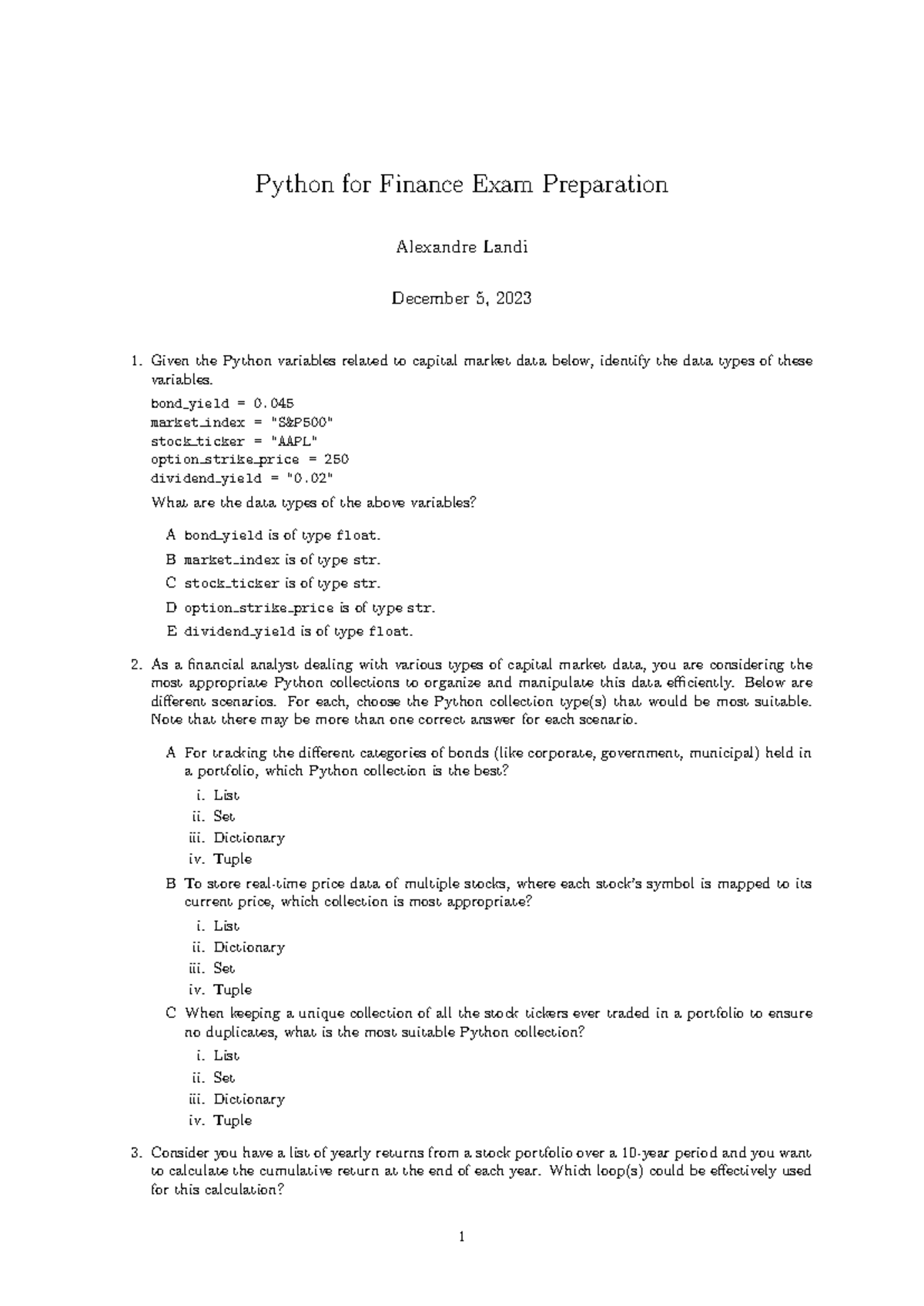 Python for Finance Exam Prep (Course Code: PF101) - Studocu