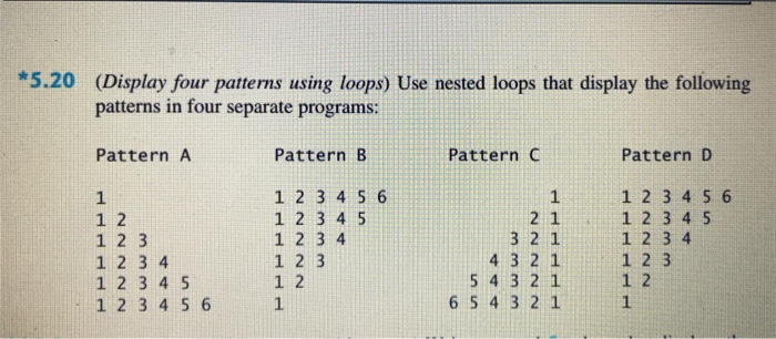 Solved *5.20 (Display four patterns using loops Use nested | Chegg.com