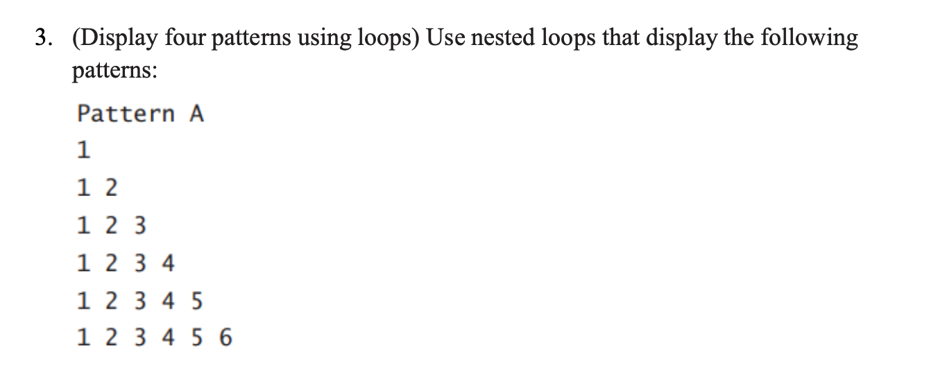 Solved 3. (Display four patterns using loops) Use nested | Chegg.com