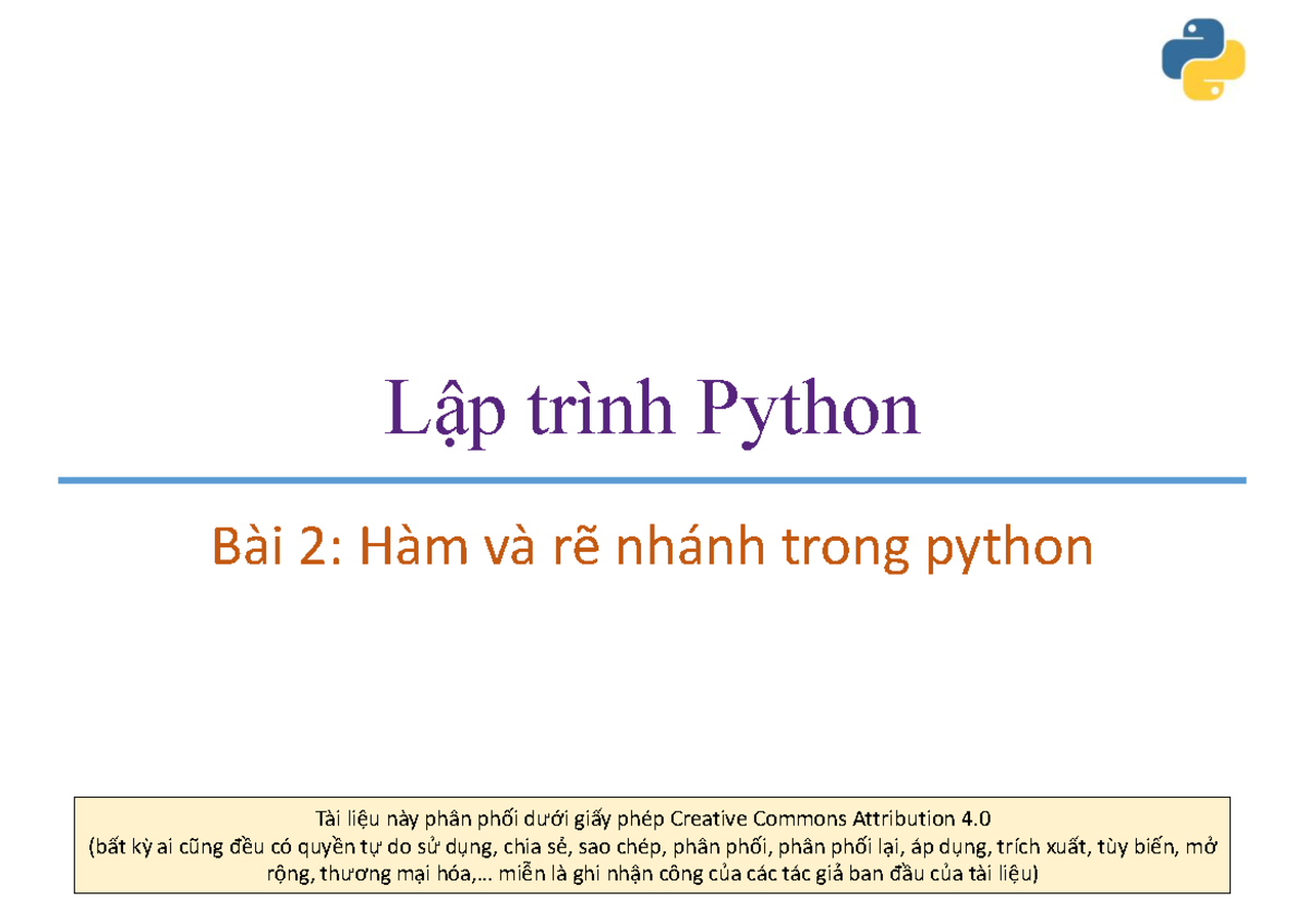 Lập trình Python Bài 2: Hàm và Rẽ Nhánh trong Python - Studocu
