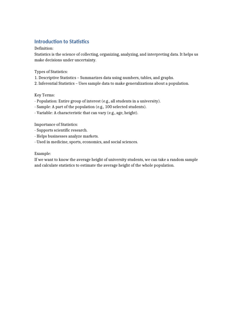 Introduction to Statistics Overview | PDF | Statistics | Level Of ...