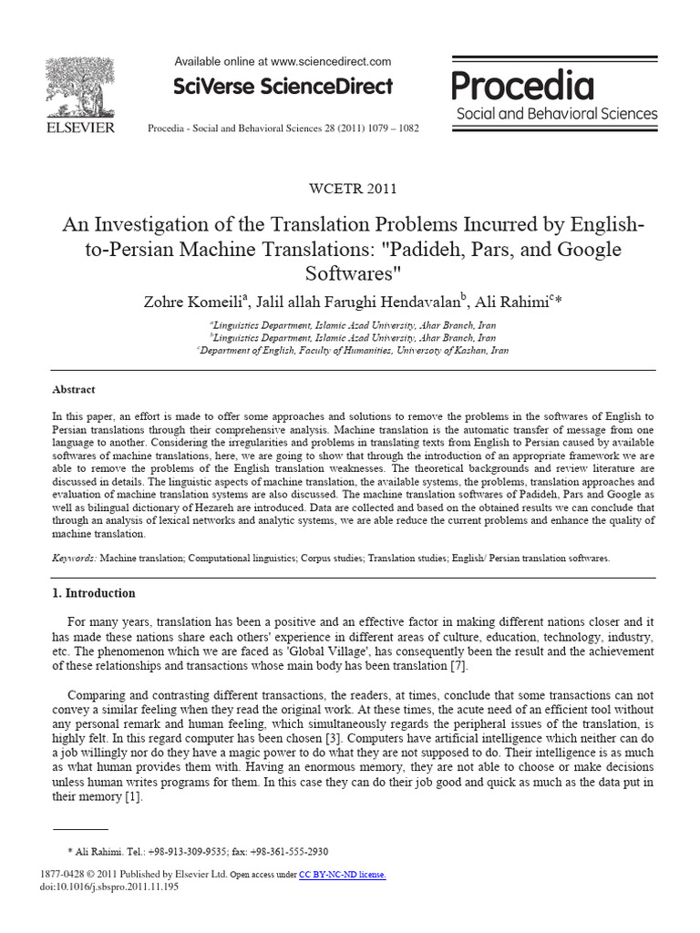English-Persian Machine Translation Issues | PDF | Translations | Word