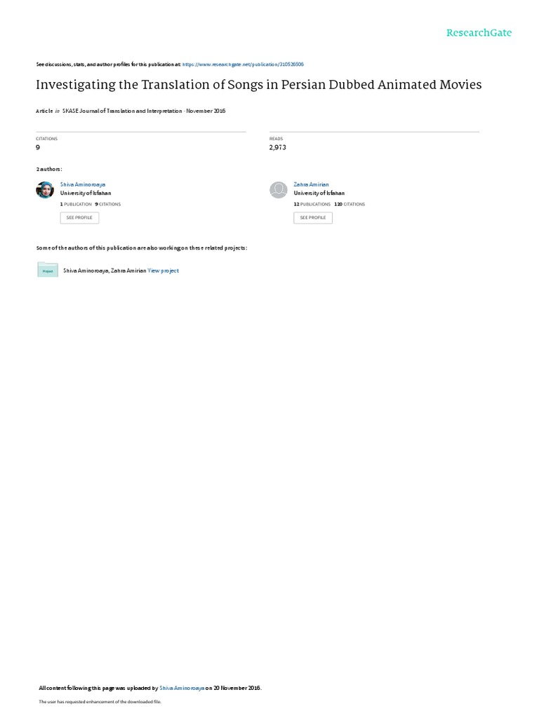 Persian Dubbed Animated Film Songs Analysis | PDF | Translations | Poetry