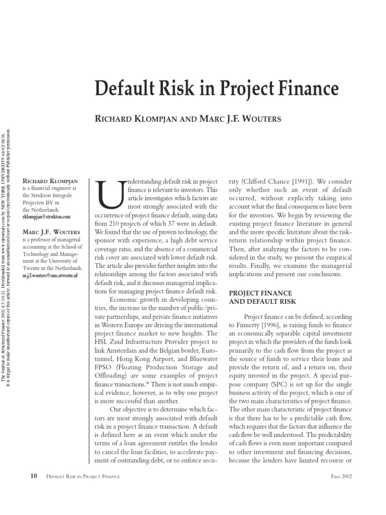 Default Risk in Project Finance - 2002 | PDF | Project Finance | Risk