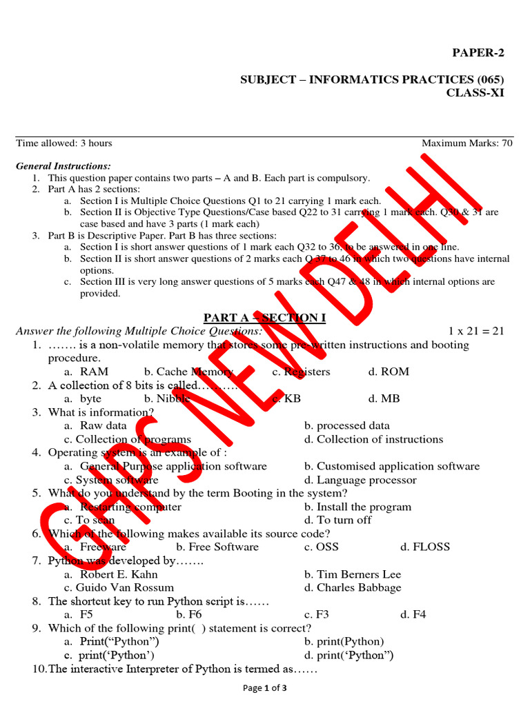 Class XI Ip Qpaper For Students | PDF | Python (Programming Language ...