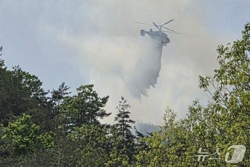 영동 상촌면 산불 재발화…헬기 5대 투입 1시간45분 만에 진화 - 뉴스1