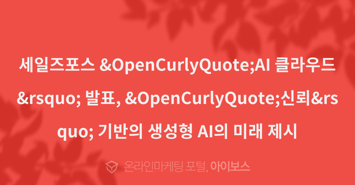 세일즈포스 ‘AI 클라우드’ 발표, ‘신뢰’ 기반의 생성형 AI의 미래 제시 - 마케팅 뉴스 - 뉴스 - 아이보스