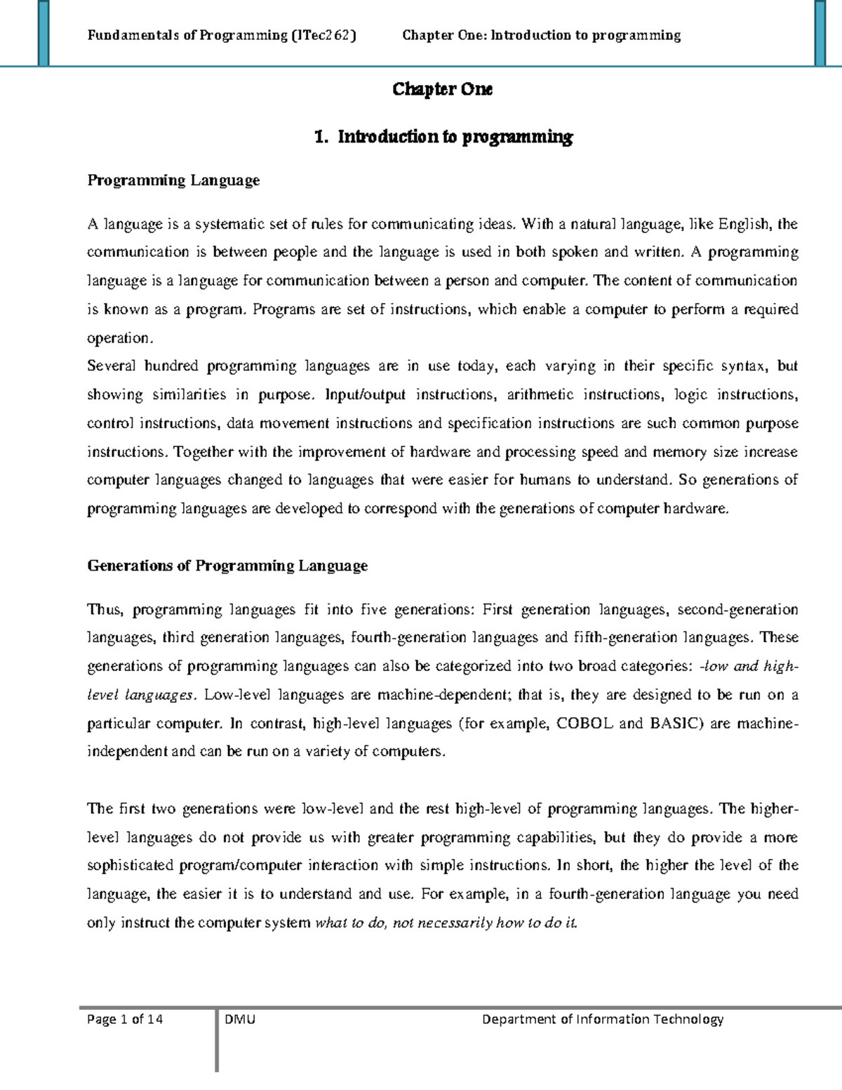 Intro To Programming - Lecture notes 1 - 1 1 INTRODUCTION TO ...