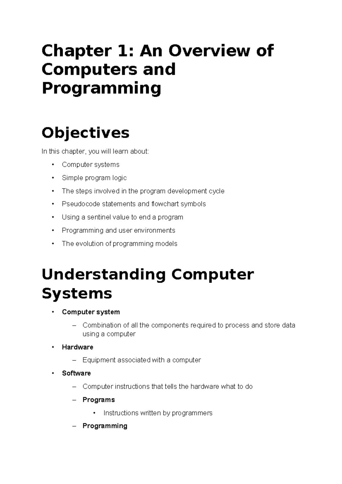 GDGG Chapter 1: Intro to Computers & Programming (Part 1) - Studocu