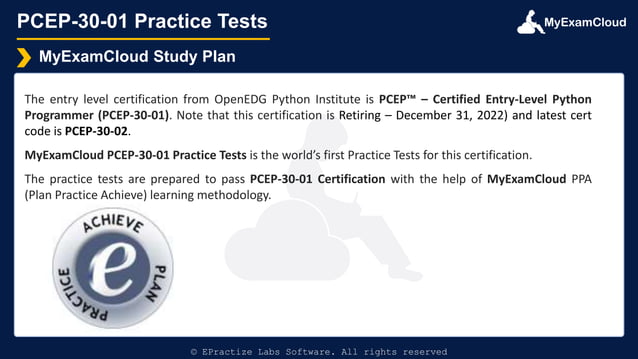 PCEP Practice Tests | PCEP-30-02 Mock Exam Questions MyExamCloud Study Plan
