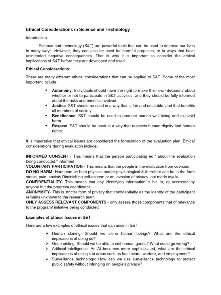 Ethical Considerations in Science and Technology | PDF | Artificial ...