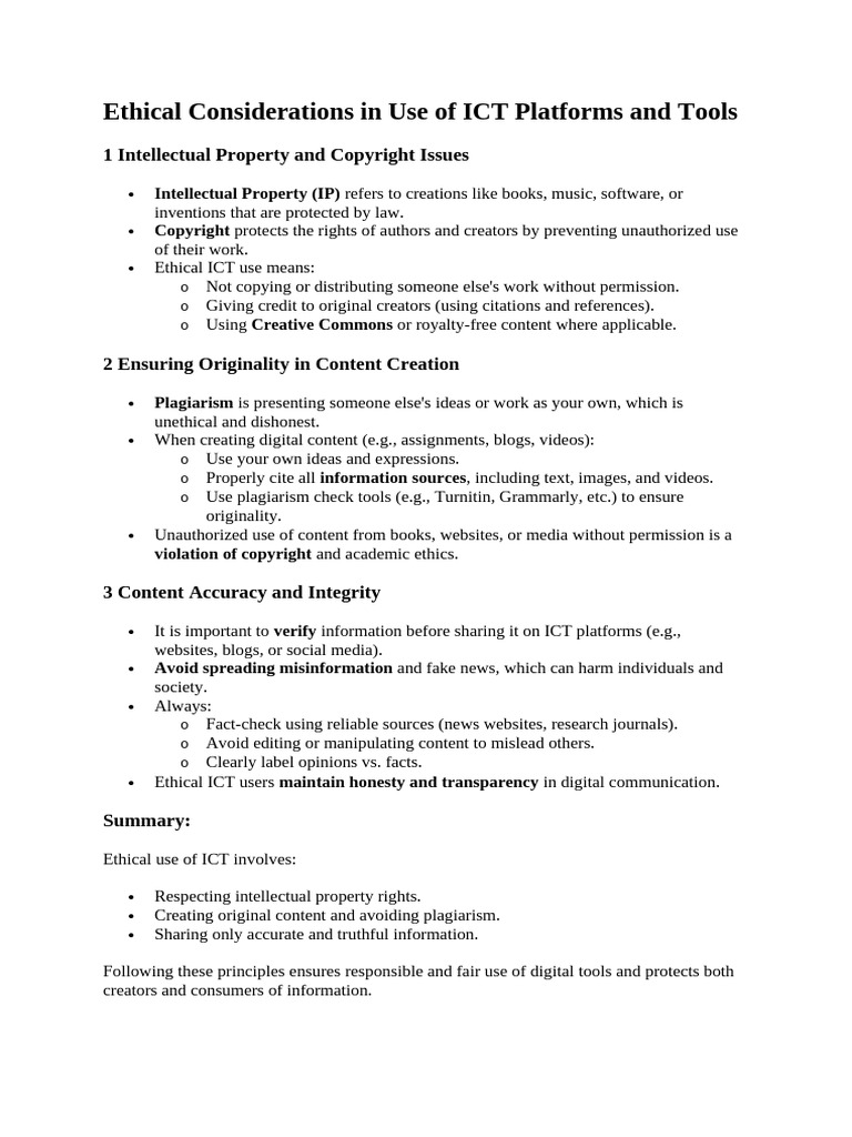 Ethical Use of ICT: Key Considerations | PDF | Intellectual Property ...