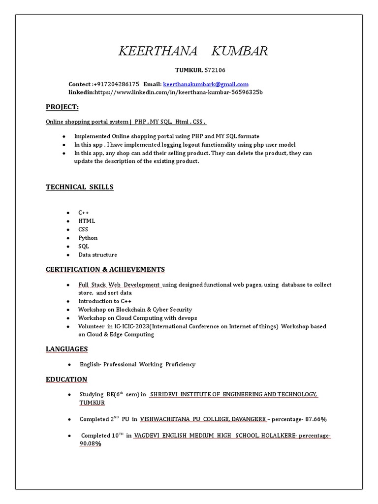 Keerthana Kumbar Resume | PDF