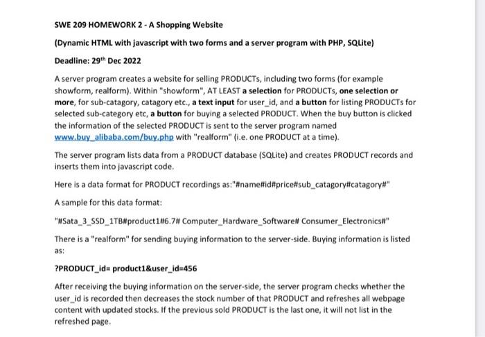 Solved SWE 209 HOMEWORK 2 - A Shopping Website (Dynamic HTML | Chegg.com