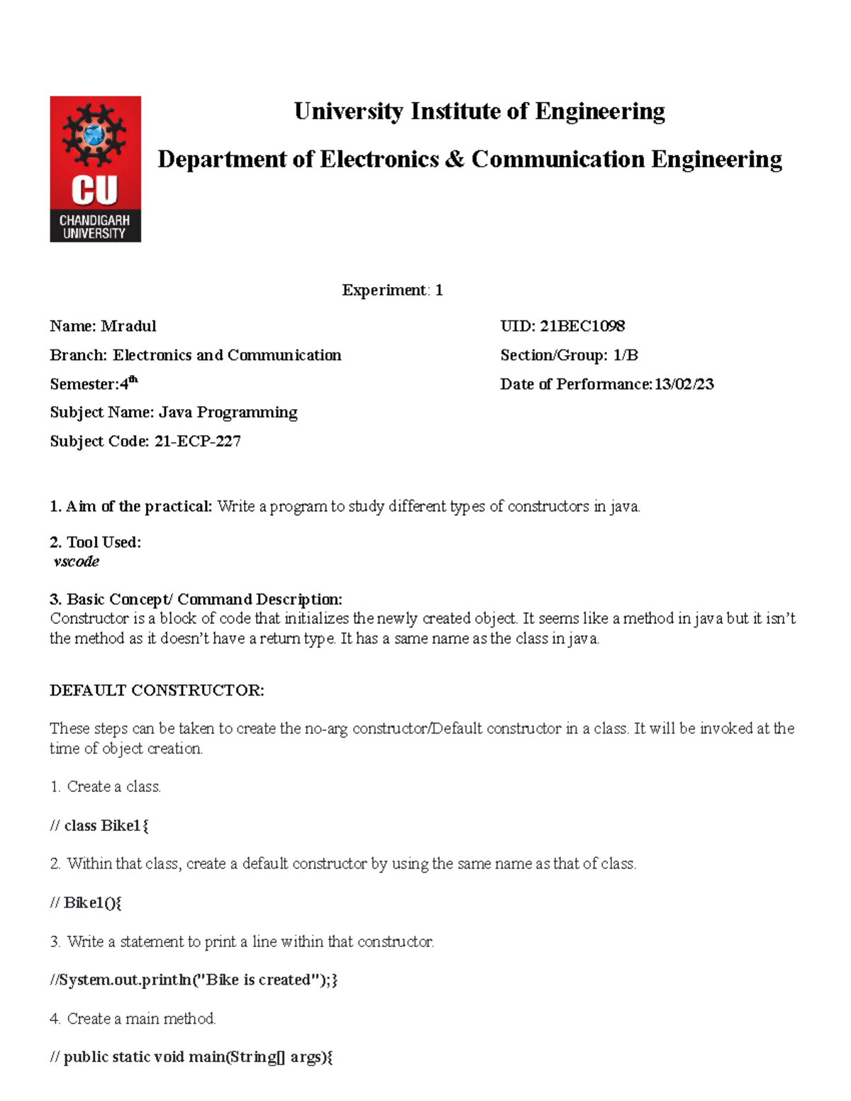 explanation of constructors and their types - Department of Electronics ...