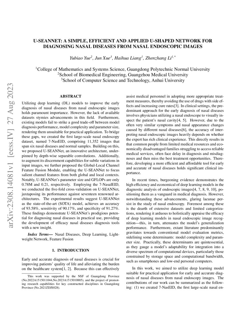 U-SEANNet: A Simple, Efficient and Applied U-Shaped Network for ...