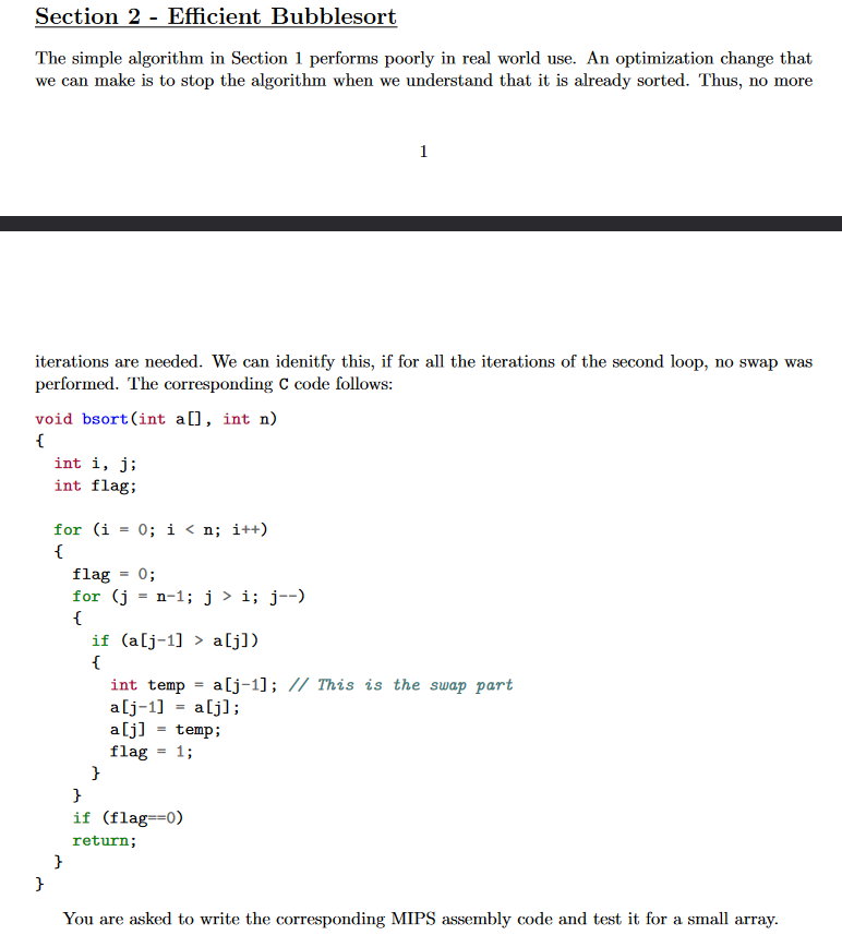 Solved Section 2 - Efficient Bubblesort The simple algorithm | Chegg.com
