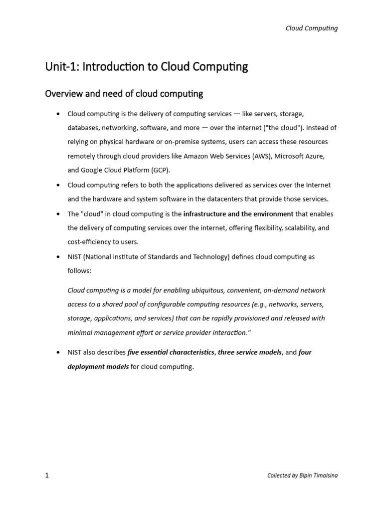 Unit1 Introduction | PDF | Cloud Computing | Software As A Service