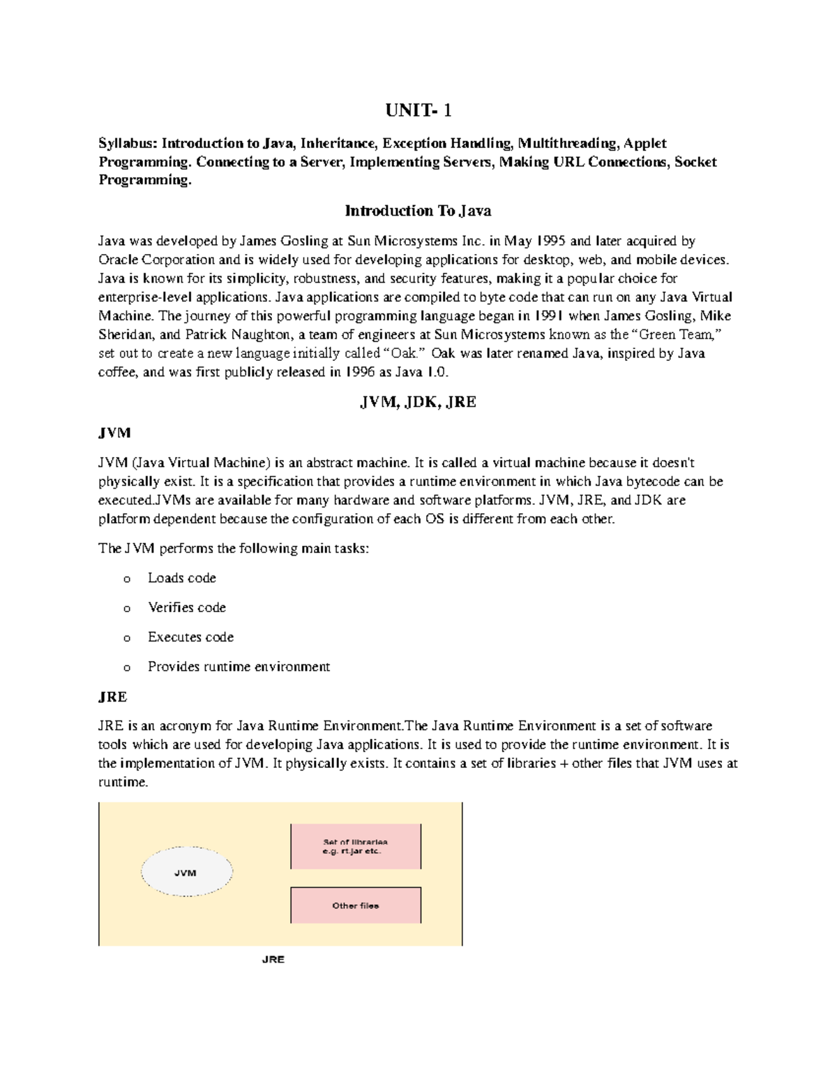 Java Unit 1 - notes for the subject java Unit1 - UNIT- Introduction ...