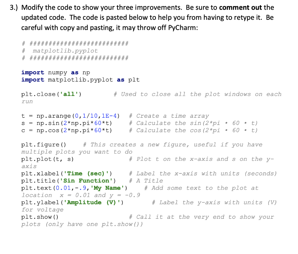 Solved Modify the code to show your three improvements. Be | Chegg.com